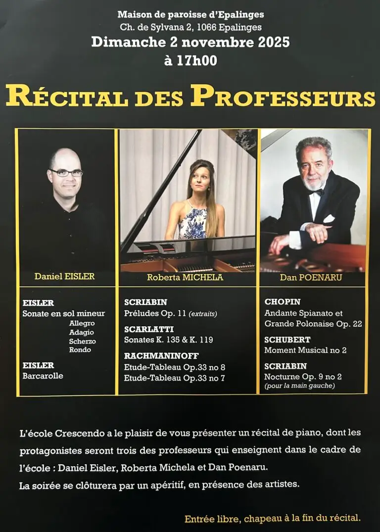Nos professeurs Dan Poenaru, Daniel Eisler et Roberta Michela se succèderont sur la scène pour notre plus grand plaisir.