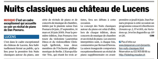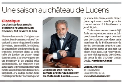 “ … The pianist Dan Poenaru interpreted les Tableaux d’une expositions de Moussorgski in a masterly fashion, with  sensitivity, finesse and virtuosity truly out of the ordinary …”